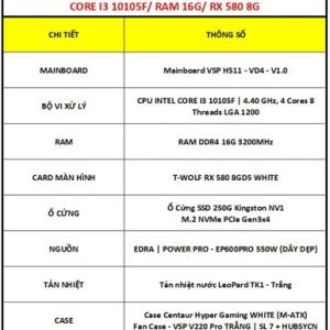 PC THANH LÝ | CORE I3 10105F/ RAM 16G/ SSD 250G/ VGA RX 580 8G/ PSU 550W | BẢO HÀNH 12 THÁNG