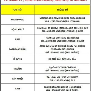 PC THANH LÝ | X99 DUAL 2680V4 (24 NHÂN 48 LUỒNG) RAM 32G (16X2)/ GT 440 1GD5/ PSU 750W | BẢO HÀNH 1 THÁNG