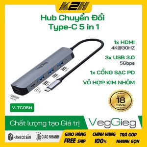 CÁP CHUYỂN VEGGIEG | TYPE C TO HDMI/ 3 USB 3.0/ POWER | HÀNG CHÍNH HÃNG