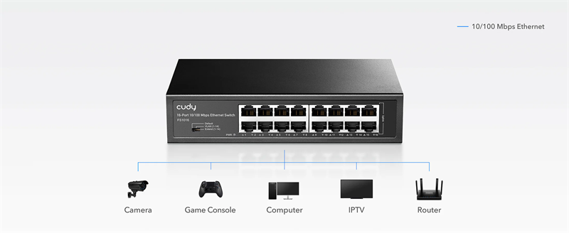 Thiết bị chuyển mạch (SWITCH) CUDY 16-Port 10/100 Mbps Metal Switch (FS1016)