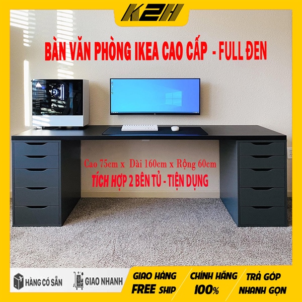 BÀN GAMING & VĂN PHÒNG IKEA | TÍCH HỢP 2 BÊN TỦ – FULL ĐEN | 160 X 60 X 75 Cm