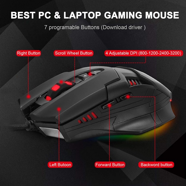 - ✅Chuột chơi game công thái học: Chuột chơi game có đèn nền có đèn thở nhiều màu sắc thông minh, thiết kế chức năng lùi và tiến của nút bên trái, 4 mức Dpi có thể điều chỉnh (800-1200-2400-3200) và thiết kế chống trượt, mang lại khả năng định vị chính xác và Phản hồi nhanh, trải nghiệm trò chơi sống động hơn.