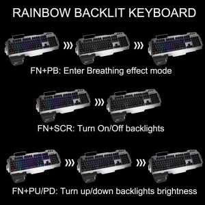 - Bàn phím chơi game được làm bằng bảng kim loại màu bạc sáng bóng bằng hợp kim nhôm, chắc chắn và bền bỉ. Thiết kế công thái học của cả bàn phím và chuột giúp bạn không bị mỏi tay; Cảm giác cơ học chuyên nghiệp mang đến cho bạn trải nghiệm sử dụng tuyệt vời.