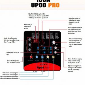 Sound card Icon Upod Pro tối ưu âm thanh chất lượng cao 16bit/48kHz, cung cấp 72 hiệu ứng âm thanh kỹ thuật số, phục vụ tốt cho nhu cầu thu âm online, hát karaoke trên máy tính hay hát karaoke online. Là đàn anh của các soundcard như XOX K10, Sound card HF 5000 pro, Sound card Alctron U16k Mkii,…