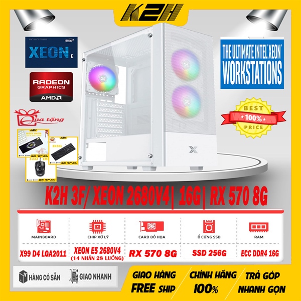 CẤU HÌNH TỐI ƯU | XEON E5 2680V4/ RAM ECC DDR4 16G/ VGA RX 570 8G/ SSD 256G/ PSU 550W + CASE KÍNH TẶNG 3 FAN LED