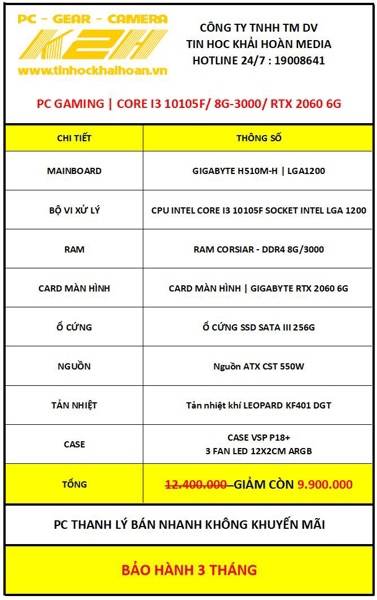 PC GAMING THANH LÝ | CORE I3 10105F/ 8G-3000/ RTX 2060 6G/ SSD 256G/ PSU 550W | BẢO HÀNH 1 ĐỔI 1 – 3 THÁNG