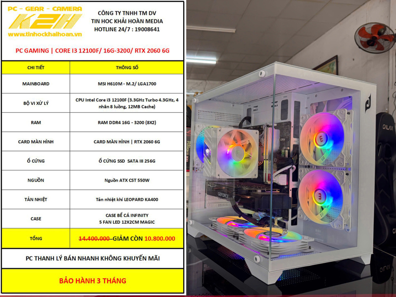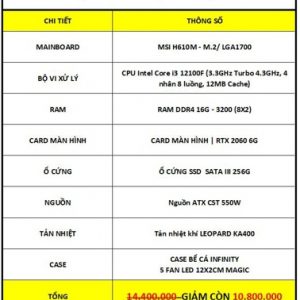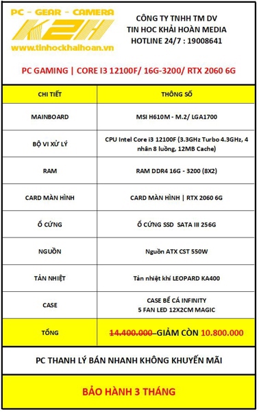 PC GAMING THANH LÝ | H610/ CORE I3 12100F/ RAM 16G/ VGA RTX 2060/ SSD 256G/ PSU 550W | BẢO HÀNH 3 THÁNG