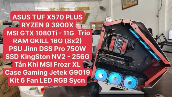PC HI-END THANH LÝ | MAIN ASUS TUF X570 PLUS | RYZEN 9 3900X (12 NHÂN 24 LUỒNG) | VGA MSI GAMING X GTX 1080TI 11G | RAM ADATA XPG 16G (8X2) | SSD NVME 256G | PSU JINN DSS 750W PRO | TẢN MSI FROZX XL | CASE JETEK G9019 + KIT 6 FAN ARGB | BẢO HÀNH 1 THÁNG