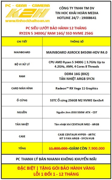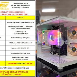 PC SIÊU LƯỚT | B450M/ RYZEN 5 3400G/ RAM DDR4 16G (8X2)/ SSD NVME 256G/ PSU 550W | BẢO HÀNH LỖI 1 ĐỔI 1 – 12 THÁNG