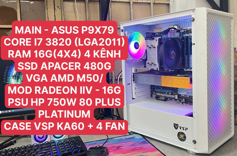 PC THANH LÝ | ASUS P9X79/ CORE I7 3820/ RAM 16G/ SSD 480G/ VGA MI50 – MOD RADEON IIV 16G/ PSU 750W – 80 PLUS PLATINUM | BẢO HÀNH 1 THÁNG