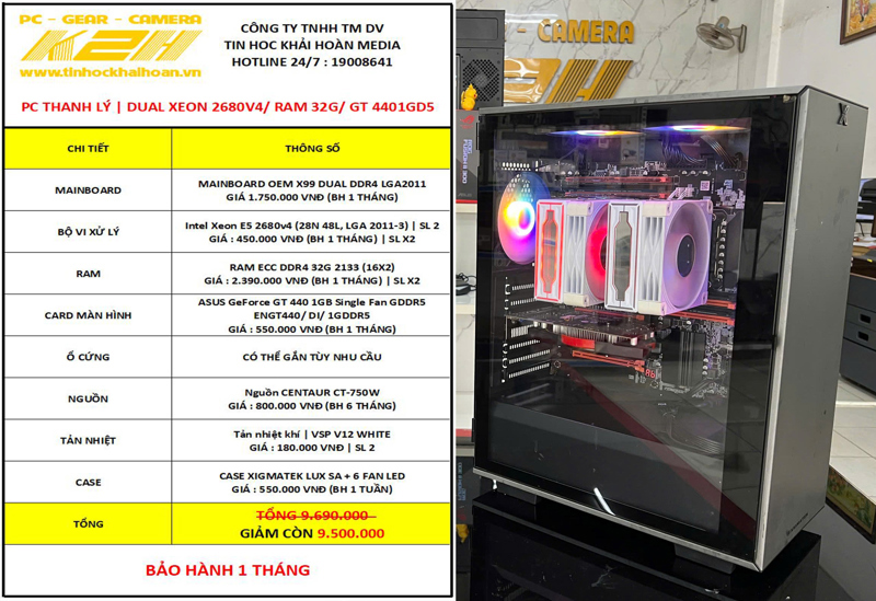 PC THANH LÝ | X99 DUAL 2680V4 (24 NHÂN 48 LUỒNG) RAM 32G (16X2)/ GT 440 1GD5/ PSU 750W | BẢO HÀNH 1 THÁNG