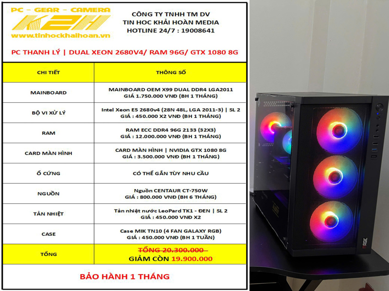 PC THANH LÝ | X99 DUAL XEON 2680V4 (24 NHÂN 48 LUỒNG)/ RAM ECC DDR4 96G 2133 (32GX3)/ VGA GTX 1080 8G/ SSD TÙY CHỌN/ PSU 750W | BẢO HÀNH 1 THÁNG