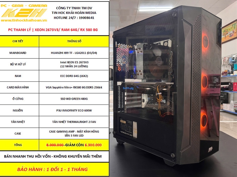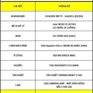 PC THANH LÝ | X99 TF/ XEON E5 2673V3 (12 NHÂN 24 LUỒNG)/ RAM ECC 64G (16X4)/ VGA SAPHIRE NITRO 580 8G/ SSD WD 480G/ PSU 600W + TẢN THÁP + 3 FAN