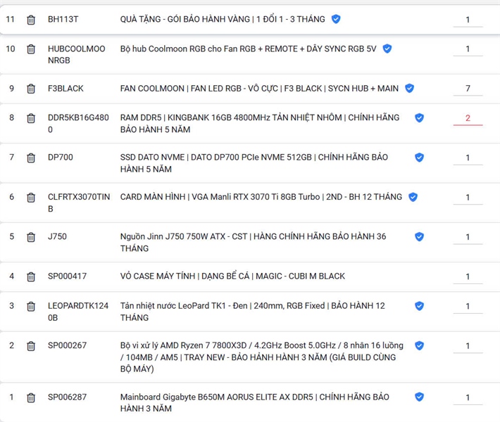 Hãy là người đầu tiên nhận xét “PC GAMING (HOT) TỐI ƯU | RYZEN 7 7800X3D/ RAM 32G DDR5/ SSD NVME 512G/ VGA RTX 3070TI 8G/ PSU 750W + TẢN NƯỚC AIO 240” Hủy