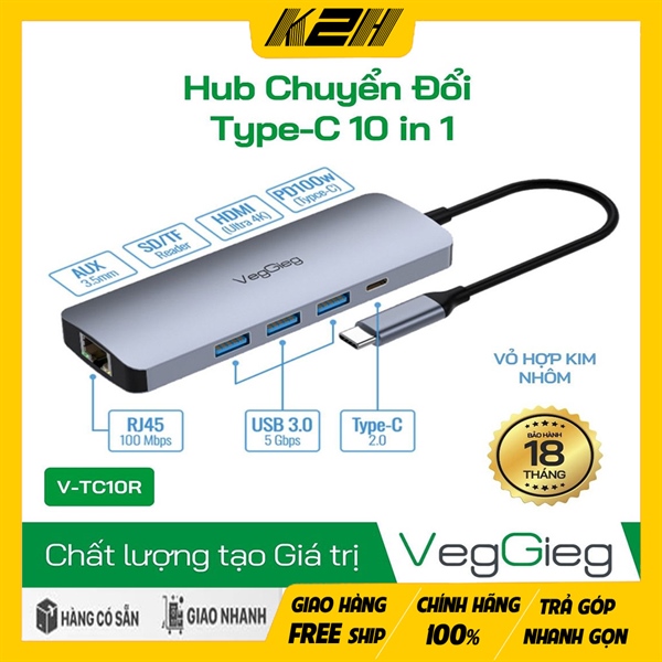 Cổng Chuyển Đổi Type-C VegGieg V-TC10R là thiết bị chuyển đổi đa năng, mang lại sự tiện lợi và linh hoạt cho người dùng với nhiều cổng kết nối hiện đại.