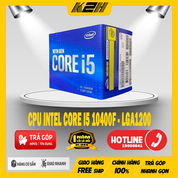 Bộ Sưu Tập Sản PhẩmBộ xử lý Intel® Core™ i5 thế hệ thứ 10Tên mãComet Lake trước đây của các sản phẩmPhân đoạn thẳngDesktopSố hiệu Bộ xử lýi5-10400FTình trạngLaunchedNgày phát hành Q2’20Thuật in thạch bản 14 nmGiá đề xuất cho khách hàng $173.00 – $183.00Điều kiện sử dụng PRQ report.