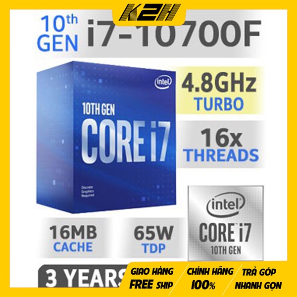 CPU Intel Core i7-10700F (2.9GHz turbo up to 4.8GHz, 8 nhân 16 luồng, 16MB Cache, 65W) – Socket Intel LGA 1200 TRAY