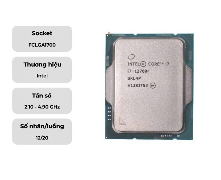 CPU Intel Core I7 12700F | LGA1700, Turbo 4.90 GHz, 12C/20T, 25MB, Tray New, Không Fan