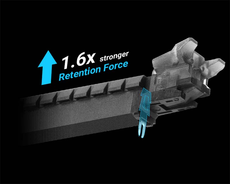 SafeSlot Core SafeSlot Core là khe cắm PCIe độc quyền của ASUS. Với một thiết kế gia cường được gắn vào bo mạch chủ bởi một móc đặc biệt, Safeslot Core cung cấp độ bám mạnh hơn 1,6 lần và độ bền trượt gấp 1,3 lần so với các khe cắm mở rộng tiêu chuẩn. |