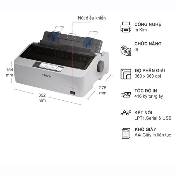 Máy in kim Epson LQ310 (In Kim, 1 Mặt) | CHÍNH HÃNG
