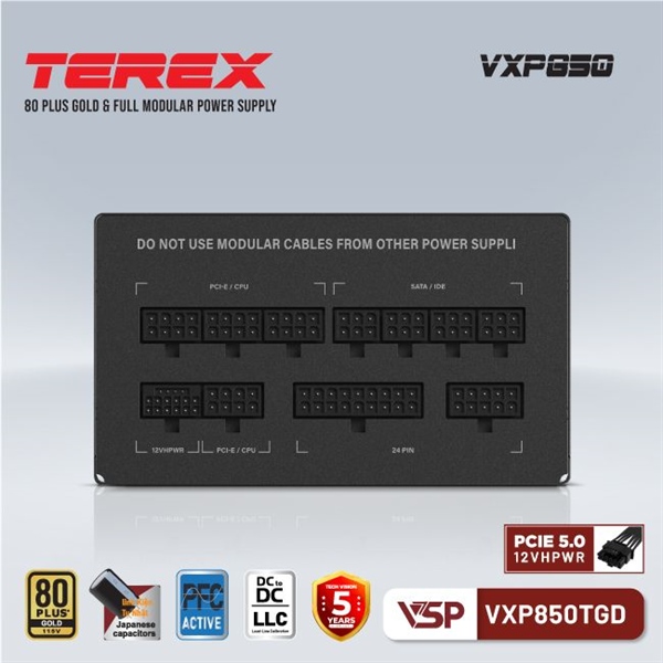 BỘ NGUỒN VSP TEREX VXP850TGD V2 – 80 PLUS GOLD – 850W | FULL MODULE/ DÂY NGUỒN VGA PCIE 5.0