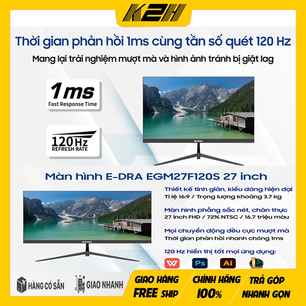Màn hình E-Dra EGM27F120S | 27 inch (FHD/IPS/120HZ/1MS) – HDMI, VGA | CHÍNH HÃNG – BẢO HÀNH 24 THÁNG