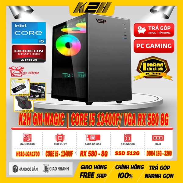 BEST SELLER | CORE I5 13400F/ VGA RX 580 8G/ RAM DDR4 16G – 3200/ SSD 512G/ PSU 550W | TẶNG GÓI BẢO HÀNH ĐẶC BIỆT LỖI 1 ĐỔI 1 – 12 THÁNG ĐẦU