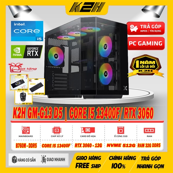 K2H GM-G12 D5 | CORE I5 13400F/ RTX 3060 – 12G/ RAM DDR5 32G/ SSD NVME 512G/ PSU 750W