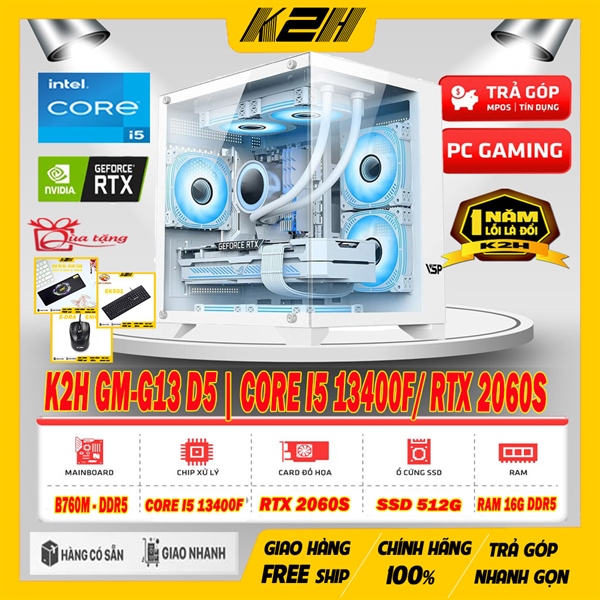 K2H GM-G12 D5 | CORE I5 13400F/ VGA RTX 2060 SUPPER 8G/ RAM DDR5 16G/ SSD 512G/ PSU 650W
