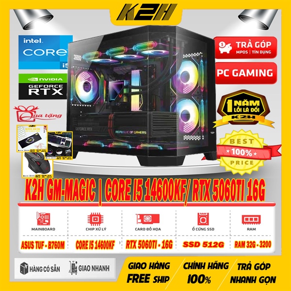PC GAMING & ĐỒ HỌA | TUF B760M CORE I5 14600KF/ VGA RTX 5060TI 16G/ RAM 32G (16X2)/ SSD NVME 512G/ PSU 800W 80 PLUS GOLD | TẶNG BẢO HÀNH ĐẶC BIỆT – LỖI 1 ĐỔI 1 – 12 THÁNG
