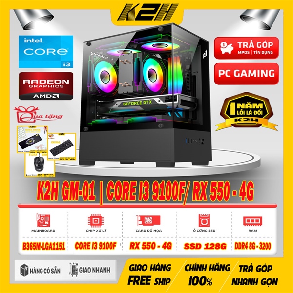 PC GAMING | K2H GM-01 B365/ CORE I3 9100F/ VGA RX 550 4G/ RAM 8G/ SSD 128G/ PSU 550W
