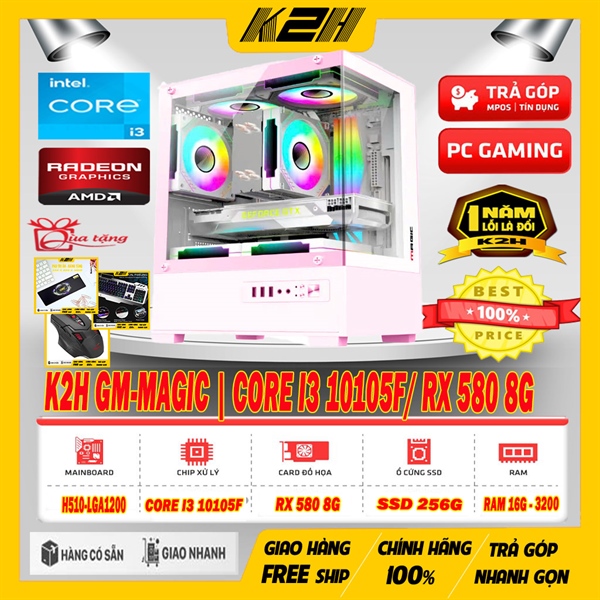 PC GAMING | K2H GM-MAGIC CORE I3 10105F/ VGA RX 580 8G/ RAM 16G/ SSD 256G/ PSU 550W