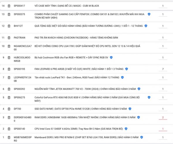 Hãy là người đầu tiên nhận xét “PC (HOT) | CUBI M – MSI B760 DDR5/ CORE I5 13400F/ RAM DDR5 32G (16X2)/ VGA RTX 4060/ SSD NVME 512G/ PSU 700W + TẢN NƯỚC AIO 240 + CASE BỂ CÁ” Hủy