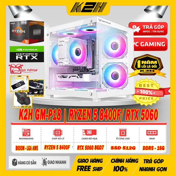 BEST PRICE PC | K2H GM-P18 AM5 | B650M/ RYZEN 5 8400F/ RAM DDR5 16G/ RTX 5060 8G GDDR7/ PSU 650W 80 PLUS | TẶNG GÓI BẢO HÀNH VÀNG LỔI 1 ĐỐI – 12 THÁNG ĐẦU