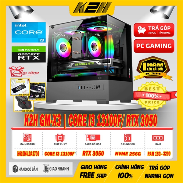 BEST SELLER | K2H GM-X3 – CORE I3 13100F/ VGA RTX 3050/ SSD nvme 256G/ RAM 16G + TẶNG GÓI BẢO HÀNH VÀNG LỔI 1 ĐỔI 1 – 12 THÁNG ĐẦU