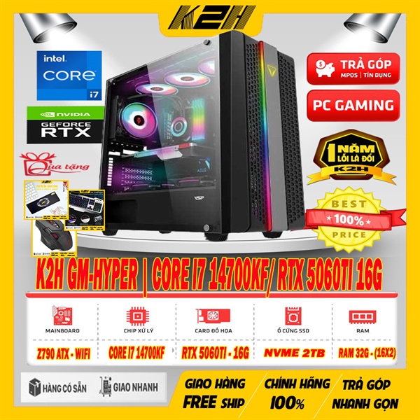 Designer PC | K2H GM-VX1 – Z790/ CORE I7 14700KF/ RTX 5060TI/ NVME GEN4 2TB/ RAM 32G (16X2)/ PSU 800W PLUS GOLD + TẢN NƯỚC AIO 360 | TẶNG BẢO HÀNH ĐẶC BIỆT 1 ĐỔI 1 – 12 THÁNG