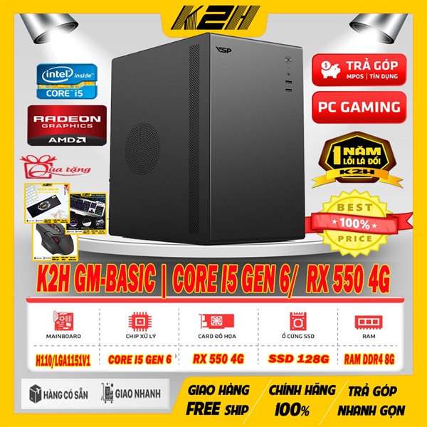 K2H GM-BASIC | CORE I5 GEN 6/ VGA RX 550 4G/ RAM 8G/ SSD 128G | BẢO HÀNH LỖI 1 ĐỔI 1 – 12 THÁNG