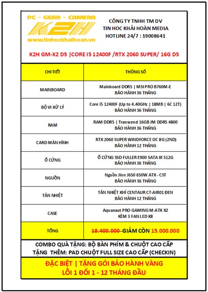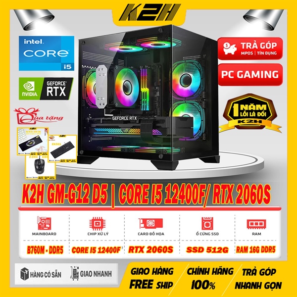K2H GM-G12 D5 | CORE I5 12400F/ VGA RTX 2060 SUPPER 8G/ RAM DDR5 16G/ SSD 512G/ PSU 650W