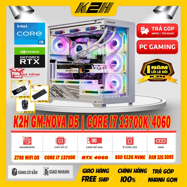 PC CAO CẤP | K2H GM-NOVA D5 | Z790 WIFI D5/ CORE I7 13700K/ RAM DDR5 32G-6000/ VGA RTX 4060 8G/ SSD NVME 512G/ PSU 850W