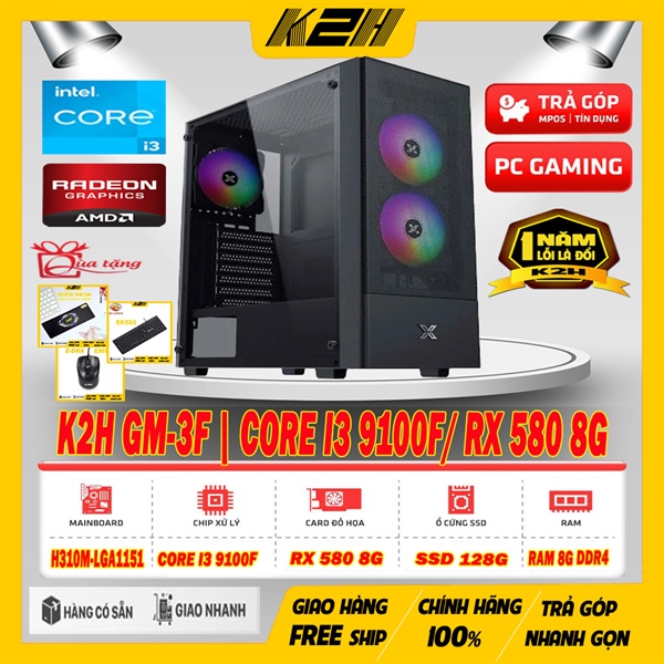 PC GAMING GIÁ RẺ | K2H GM-3F CORE I3 9100F/ VGA RX 580 8G/ RAM 8G/ SSD 128G/ PSU 550W