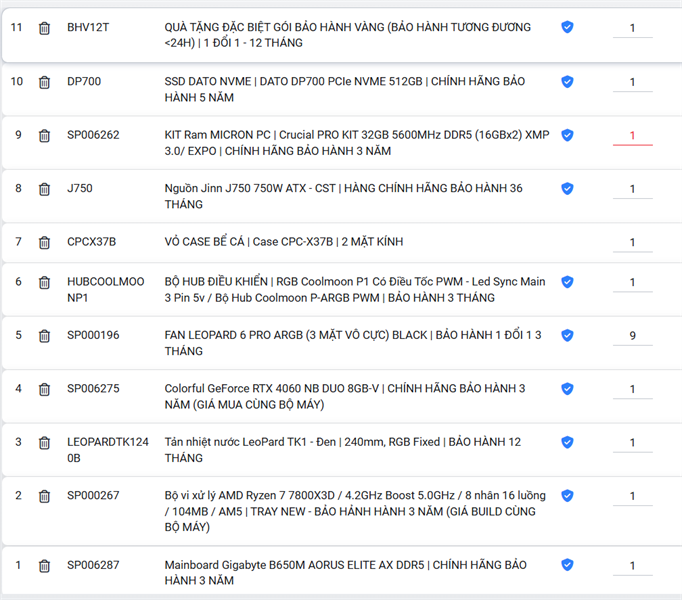 Hãy là người đầu tiên nhận xét “PC GAMING (HOT) | B650M WIFI/ RYZEN 7800X3D/ RAM 32G DDR5/ VGA RTX 4060/ PSU 750W + TẢN AIO 240” Hủy