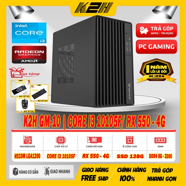 PC GAMING | K2H GM-10 CORE I3 10105F/ VGA RX 550 4G/ RAM 8G/ SSD 128G/ PSU 550W