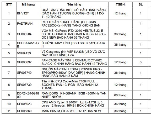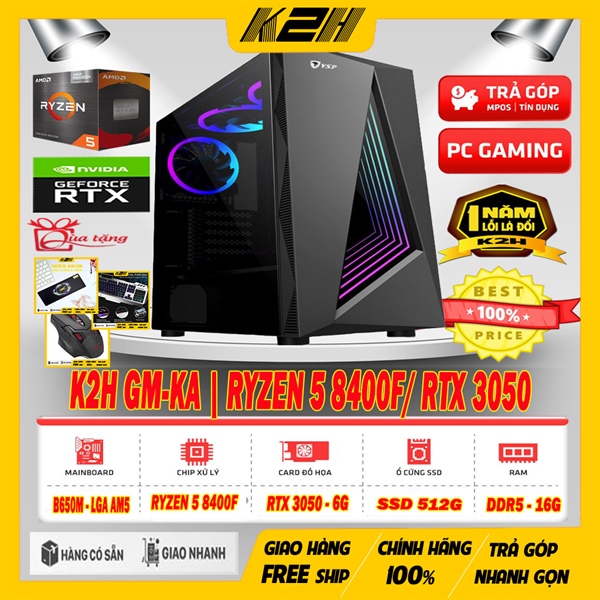 PC GAMING | K2H-KA | B650M/ RYZEN 5 8400F/ VGA RTX 3050/ RAM DDR5 16G/ SSD 512G/ PSU 550W | TẶNG BẢO HÀNH VÀNG LỖI 1 ĐỔI 1 – 12 THÁNG