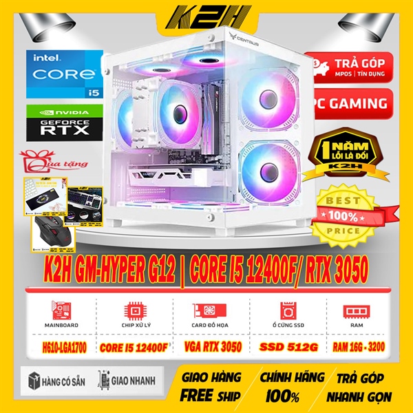 PC GAMING SIÊU HOT | K2H GM-HYPER G12 | CORE I5 12400F/ VGA RTX 3050/ RAM 16G/ SSD 512G/ PSU 550W | TẶNG GÓI BẢO HÀNH VÀNG LỔI 1 ĐỔI 1 – 12 THÁNG