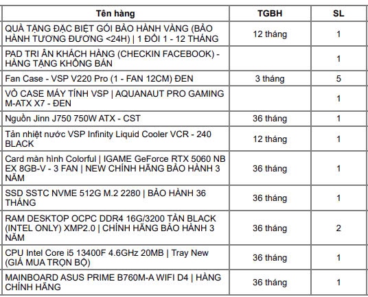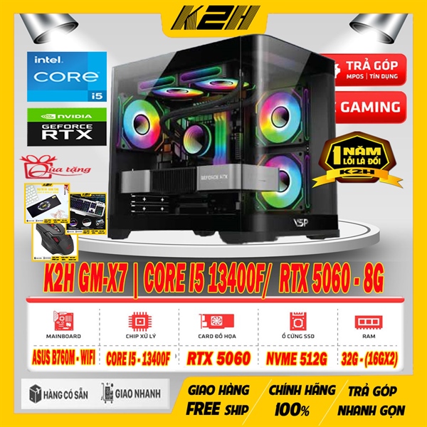 PC HOT (RTX 5060 MỚI NHẤT) | ASUS B760M WIFI/ CORE I5 13400F/RAM 32G DDR4/ RTX 5060 8G/ SSD NVME 512G/ PSU 700W | TẶNG BẢO HÀNH VÀNG LỖI 1 ĐỔI 1 – 12 THÁNG ĐẦU