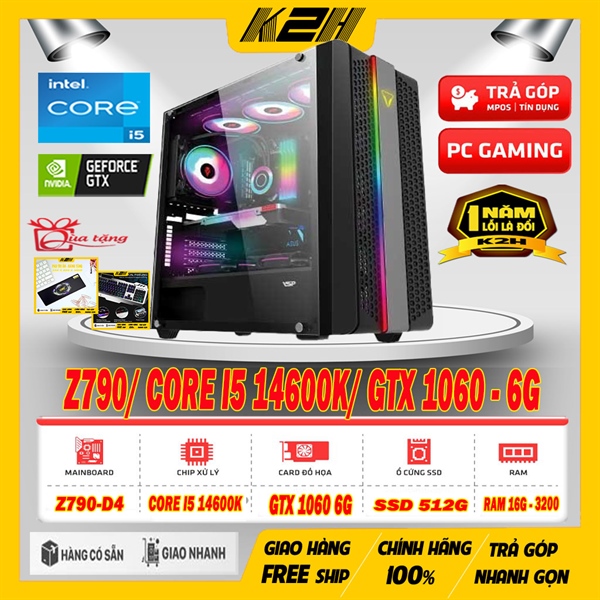 TỐI ƯU CẤU HÌNH | K2H GM-VX1 | Z790/ CORE I5 14600K/ RAM 16G/ GTX 1060 6G/ SSD 512G/ PSU 700W | TẶNG GÓI BẢO HÀNH VÀNG LỖI 1 ĐỔI – 12 THÁNG