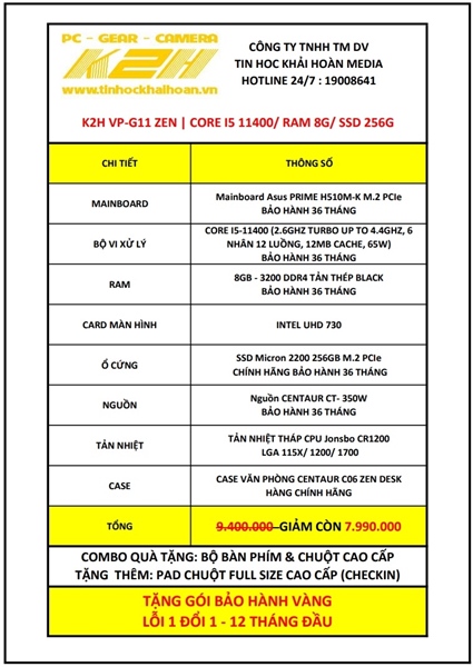 K2H VP-G11 ZEN | CORE I5 11400/ RAM 8G/ SSD 256G NVME/ PSU 350W