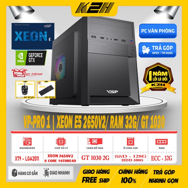 BỘ MÁY VP-PRO 1 | XEON 2650V2/ RAM 32G/ VGA GT 1030 2G – DDR5/ SSD 128G + HDD 500G/ PSU 450W