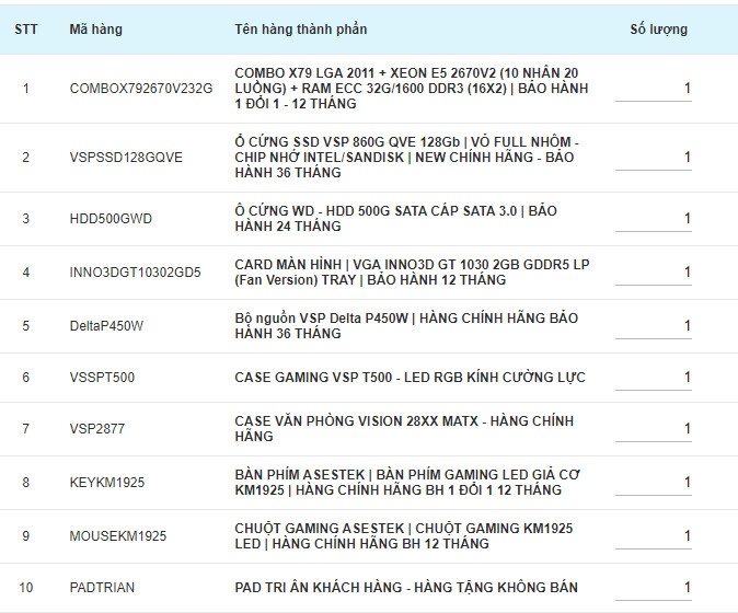 Hãy là người đầu tiên nhận xét “BỘ MÁY VP-PRO 1 | XEON 2650V2/ RAM 32G/ VGA GT 1030 2G – DDR5/ SSD 128G + HDD 500G/ PSU 450W” Hủy