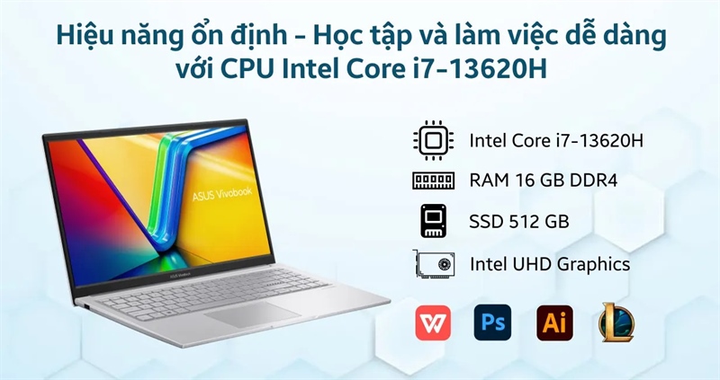 Laptop Asus Vivobook 15 X1502VA – BQ986WS (i7 13620H, 16GB, 512GB, Full HD, OfficeH24+365, Win11) | HÀNG CHÍNH HÃNG BẢO HÀNH 12 THÁNG